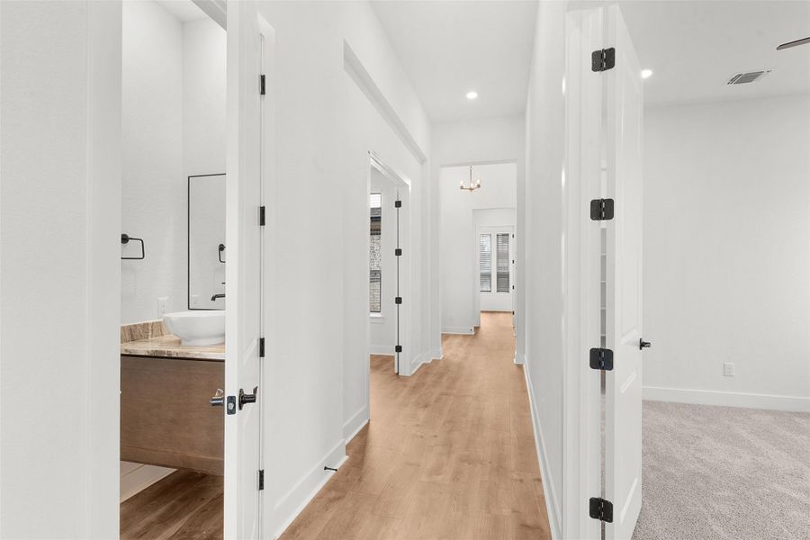 Off the kitchen near the garage entry, you’ll find a flex room (which adds 160 sq ft), hall tree, and Bedroom 4 with a private bath and walk-in closet. Additional highlights include luxury vinyl plank flooring in common areas, designer tile in bathrooms, and upgraded double front doors. Move in ready, visit our model and ask about our current buyer incentives!