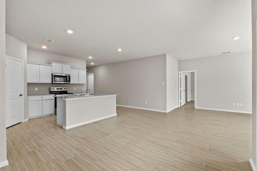 *Seller is willing to assist with closing costs or a rate buy-down through preferred lender with an acceptable offer. * The Texas Cali is a spacious and thoughtfully designed single-story home offering approximately 1,836 sq. ft. of living space with 4 bedrooms, 2 bathrooms, and a 2-car garage. A welcoming front porch opens into a defined foyer that leads into an open-concept layout where the kitchen, dining area, and family room come together in one bright, connected living space ideal for both everyday living and entertaining. The kitchen features stainless steel appliances, generous counter space, a centrally located island with sink overlooking the family room, and a walk-in pantry for added storage. The adjacent dining area flows seamlessly into the expansive family room, creating a comfortable central gathering space. The private primary suite is located toward the rear of the home and includes a large bedroom, a walk-in closet, and a full ensuite bath. Three additional bedrooms are arranged along the opposite side of the home, each with its own closet and convenient access to the secondary bathroom perfect for guests, children, or a home office. A dedicated laundry room, hallway storage, and direct access to the two-car garage adds to everyday convenience. A covered rear patio completes the design, extending your living space outdoors and offering a relaxing place to unwind. With its smart layout, generous living areas, and private bedroom separation, the Texas Cali provides comfort, functionality, and flexibility for a variety of lifestyles.
