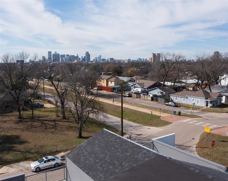 Experience elevated urban living where design, location, and views converge. This stunning 2025 new-construction modern townhome is ideally positioned directly along the Santa Fe Trail, offering a rare blend of nature, recreation, and city energy—all with unobstructed views of the Downtown Dallas skyline. Located less than 10 minutes from the heart of Downtown and just moments from Tenison Park Golf Course, this home delivers a lifestyle few properties can match.