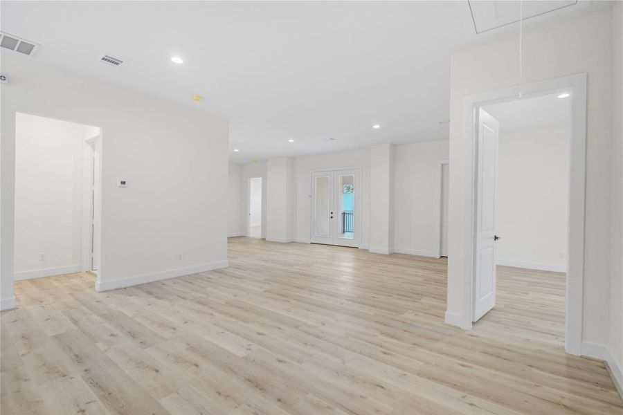 Stunning, brand-new contemporary construction situated on an oversized lot, offering 5 bedrooms, 4 full bathrooms, 2 half baths, a private office, media room, and an expansive 4-car garage. The open-concept kitchen flows seamlessly into the family and dining areas, anchored by a sleek wall-mounted electric fireplace. The chef’s kitchen boasts quartz countertops, large center island, gas cooktop, dual ovens, stainless steel appliances, pot filler, wine refrigerator, and oversized walk-in pantry, all complemented by elegant tile flooring. The luxurious primary suite features abundant natural light, dual vanities, a spa-inspired walk-in shower with separate soaking tub, custom shelving and drawers. Second level offers three spacious bedrooms, each with its own en-suite bath, 4th bedroom, along with a custom media room, large game room, and expansive patio. All-stucco exterior is enhanced by custom landscaping, a huge covered patio, and a spacious backyard—perfect for outdoor entertaining.