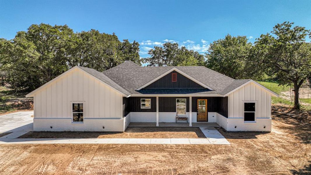 Experience serene country living in this proposed Lucas plan new construction home in Poolville, free from city taxes and HOA fees. The open concept design offers a spacious yet cozy floor plan with a large kitchen island and custom painted cabinets. Featuring 3 bedrooms, 2 bathrooms, and a 2-car garage on a 2-acres, this home provides ample space for comfort. Take advantage of NO PAYMENTS while you build with Zeal Home Builders! The master suite includes double sinks and a walk-in closet conveniently connected to the laundry room. While quaint in size, this Lucas plan lacks no features a custom home deserves including split bedrooms, large porches, custom cabinetry & closets, Delta faucets, concrete drive, decorative mirrors, wall mounted TV outlets & hardline ethernet ports, SPRAY FOAM insulated walls & more. Builder spares no expense on your 2-car garage fully finished with can lighting & smart MyQ side mount garage motor & auto-lock for extra safety. Home will come with a 3-phase inspected & a comes with 1-2-10 3rd Party Warranty for your peace of mind. Find yourself surrounded by privacy and seclusion from the city while still only minutes to creature comforts. Estimated completion 5-6 months from start to finish. With a wide range of options at your disposal, you can tailor it to suit your unique needs. Photos & floor plan are of previous builds & subject to change. Located just 25 minutes from Weatherford & under an hour from downtown FTW. Txt keyword ZHBHOME5 to 88000 for Virtual Tour & more!