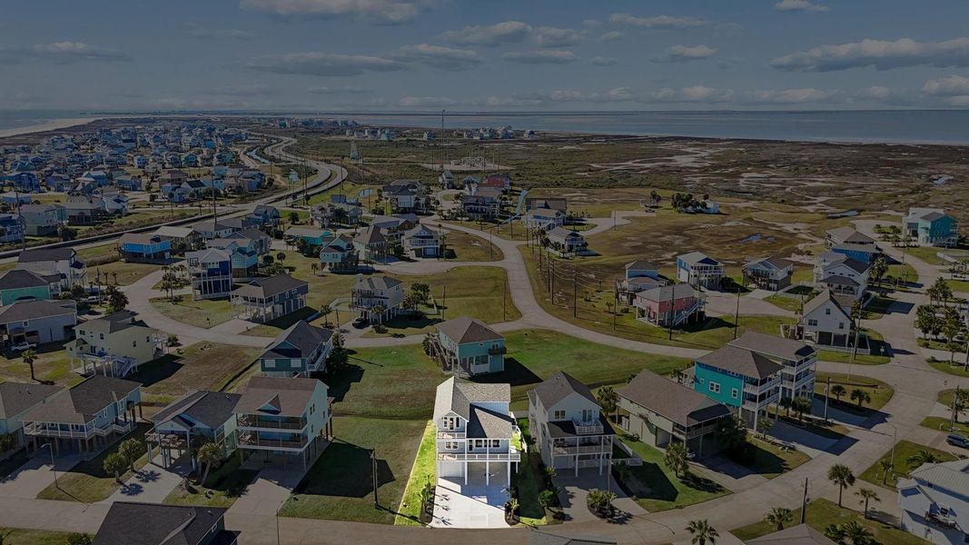Just a 3-minute walk to the beach, this designer coastal home offers Gulf and bay views with elevated finishes throughout. A bright open-concept layout is filled with natural light and showcases custom woodwork on walls and ceilings, designer tile accent walls, and a relaxed bohemian-modern aesthetic rarely found in Galveston. The living area opens to a large covered patio for seamless indoor-outdoor living, while the primary suite features a private covered patio and a huge custom walk-in closet. A built-in wet bar under the stairs adds a perfect entertaining touch. Additional highlights include a downstairs shower and all appliances included, including washer and dryer. Move-in ready and thoughtfully designed—this is coastal living at its finest.