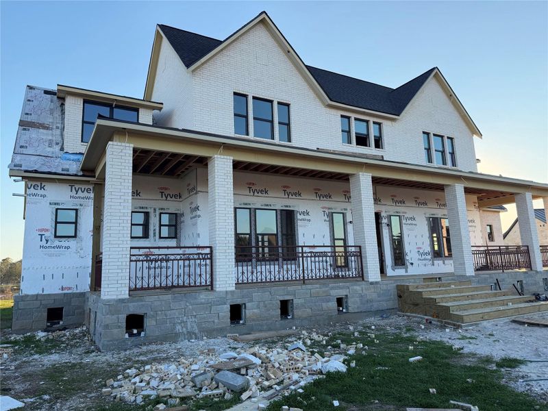 The home features soaring high ceilings and a bright, open layout that enhances its sense of scale and sophistication. Spacious living areas provide seamless flow. Outdoor living is equally inviting, with a welcoming front porch and a private rear patio.
