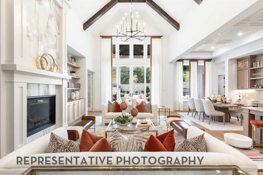 Popular Verona design with huge great room featuring fireplace and built-ins, beamed ceilings open to gourmet kitchen. Custom cabinets, Quartz countertops, GE Monogram stainless steel appliances included, double oven, 6 burner gas range, wine cooler. Breakfast nook has a butlers pantry. Primary suite with sitting room, spa bath with oversized walk-in shower, multiple showerheads, freestanding tub, large walk-in closet with built-ins. Entertainment room for movie night fun. Large utility room with sink, extensive cabinets and room for a 2nd fridge. All en-suite bedrooms, one with sitting room. Oversized outdoor living opens with tall sliders into great room. Appointed with all of the newest design features and upgrades. Plenty of room for a pool and play equipment. Must see!