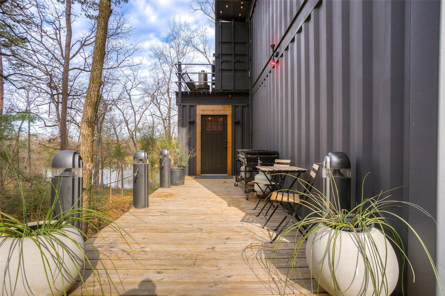 Own a WATERFRONT Container Home featuring 2 bedrooms and 2 bathrooms, designed with a highly functional open-concept living area and kitchenette, welcoming entry foyer, rooftop deck overlooking the water, and a versatile bonus room ideal as a bar or additional sleeping space. Sleek, modern finishes include Italian wood flooring and tile throughout, commercial-grade carpet in the bedrooms, and premium appliances and fixtures by Buster + Punch, GE Café, Frigidaire, Kohler, and more. This home is enhanced with smart, stylish technology, including a whole-home battery backup system that is solar-ready and a fully integrated Savant smart system for lighting, climate control, music, and energy management. Spanning 1,120 square feet of intentional, modern design. Why wait and let someone else claim this one-of-a-kind property?