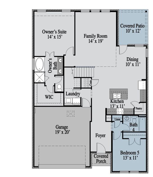 This beautiful two-story home offers a thoughtful layout designed for both comfort and functionality. The first floor features a welcoming foyer that leads to a spacious family room, dining area, and modern kitchen with a pantry. The primary suite is conveniently located on the main level and includes a walk-in closet and private bath, while an additional bedroom with its own bath is also located downstairs—perfect for guests or extended family. Upstairs, a loft provides extra living space along with three more bedrooms, each with generous closet space, and an additional bath. A covered patio extends the living space outdoors, and the home is completed with a two-car garage and a practical laundry room, making it ideal for everyday living and entertaining.