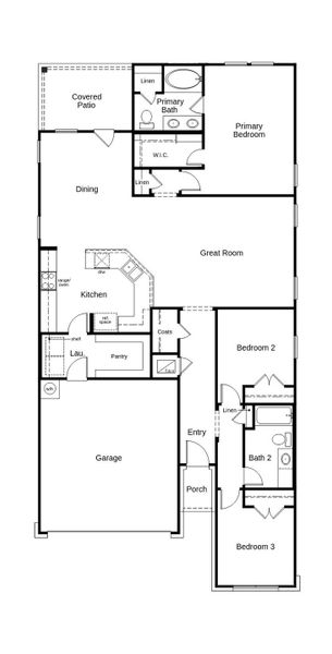 This charming, single-story home showcases an open floor plan with durable ceramic tile flooring and a generous great room for family gatherings or downtime. The kitchen is equipped with flat-panel upper cabinets, stylish tile backsplash and Arctic Pearl granite countertops. Unwind in the primary bedroom, which features plush carpeting, a convenient walk-in closet and connecting bath that offers a dual-sink vanity and tub/shower combination. Additional amenities include a smart thermostat, timeless Sherwin-Williams® interior paint, modern Moen® fixtures and ceiling fan at great room. Relax outdoors under the covered back patio, which is ideal for year-round enjoyment.