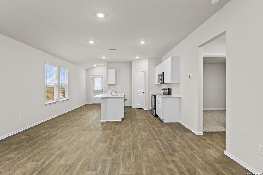 *Seller is willing to assist with closing costs or a rate buy-down through preferred lender with an acceptable offer. * The Diana plan is our largest one-story home offered in Applewood in San Antonio, TX. Featuring 2 classic front exteriors, 3 bedrooms, 2 baths, 2-car garage and 1535 square feet of living space, this floor plan is sure to turn heads. Comfort greets you at the door with a long foyer leading to a combined living and dining area, then flowing into the grand corner kitchen. The kitchen includes a breakfast bar with beautiful granite counter tops, stainless steel appliances, shaker style cabinetry and a corner pantry with built-in shelving. Your blended family room and dining area feature quality sheet vinyl flooring and plenty of windows, creating a light and bright space for living and entertaining. The main bedroom is located at the back of the home and has its own attached bathroom that offers a separate water closet, tiled walk-in shower and spacious walk-in closet. All secondary bedrooms offer quality carpeted floors and a closet. These rooms are versatile. Use them as bedrooms, offices, work out rooms or other bonus spaces. The Diana floor plan also includes granite countertops in all bathrooms, full yard landscaping and irrigation, and our HOME IS CONNECTED base package. Using one central hub that talks to all the devices in your home, you can control the lights, thermostat and locks, all from your cellular device.