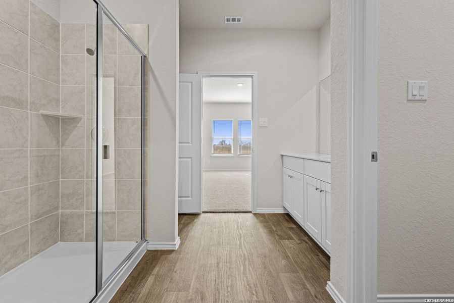 Introducing The Hanna, a two-story home featuring 4 bedrooms, 2.5 baths, and a 2-car garage at Salado Creek, a new home community in San Antonio, TX. Here you will find a beautiful open-concept layout with 2042 square feet of functional living space. Your kitchen, dining area and family room blend together seamlessly with plenty of room for everyday living as well as plenty of natural light from the large windows. The gourmet kitchen includes quartz counter tops, stainless steel appliances, shaker style cabinetry and a kitchen island overlooking the living area. The main bedroom suite is downstairs and features quality carpet flooring and an attached bathroom complete with separate water closet, quartz vanity counter top, tiled walk-in shower and a large walk-in closet. The second story includes a full bathroom, a game room, and all secondary bedrooms. Whether these rooms become bedrooms or other bonus spaces, there is sure to be comfort. Additional features of The Hanna floor plan include sheet vinyl flooring in entry, living room, and all wet areas, quartz bathroom counter tops throughout the home, and rear covered patio over looking full yard landscaping and irrigation. This home includes our HOME IS CONNECTED base package. Using one central hub that talks to all the devices in your home, you can control the lights, thermostat and locks, all from your cellular device. *Seller is willing to assist with closing costs or a rate buy-down through preferred lender with an acceptable offer. *