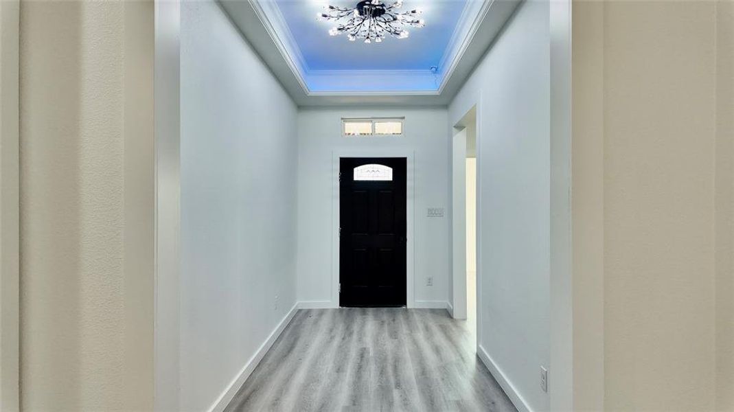 Welcome to this stunning brand-new home featuring a bright, open-concept floor plan designed for modern living and effortless entertaining. Clean white lines and designer finishes create a fresh, elegant feel throughout. The eat in kitchen showcases beautiful quartz countertops, ample cabinetry, SS appliances and flows seamlessly into the spacious living and dining areas accented by tray ceilings and decorative ceiling beams. Additional features include Smart LED cove lighting at the entrance, living room and master. Additional custom lighting in kitchen cabinets and under cabinets.