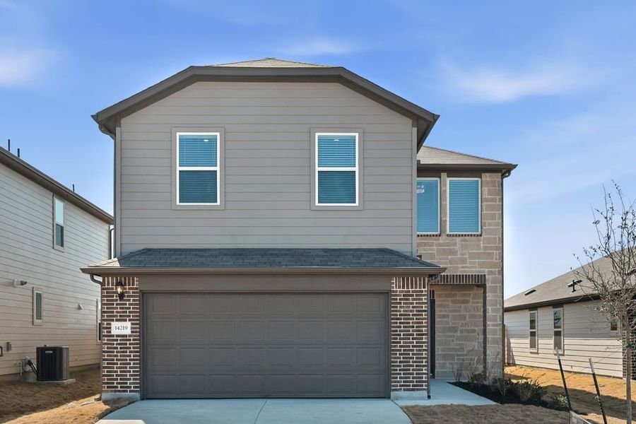 Welcome to the Harrier at 14219 Matterod Drive in Longview 40s! Step inside and enjoy the flow of soft natural light and spacious living. From the inviting porch, the foyer opens to a convenient powder room and a generous coat closet. Further in, the heart of the home feels bright and open with a cozy great room, a charming kitchen with an island, and a sweet dining area that leads to the covered patio. The two car garage is just steps away for everyday ease. Upstairs, two lovely bedrooms share a full bath, and the laundry room sits across from a cheerful game room. Tucked quietly at the end of the hall, the serene primary suite offers a spa inspired bathroom and a roomy walk in closet. Life in Longview brings daily delight. This special Del Valle community offers a beach entry pool, playful playscapes, pickleball courts, sports fields, lush trails, beautiful butterfly and rain gardens, peaceful pocket parks, and a welcoming Amenity Center. With the airport close by, your next adventure is always within reach. Additional Highlights Include: Tankless water heater and whole house blinds. MLS#2362797
