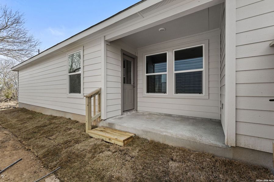 Introducing The Wyeth, a beautiful floor plan featured in the Sonora new construction home community in San Antonio, TX. This thoughtfully designed single-story home offers 1023 square feet of living space, with 3 bedrooms and 2 bathrooms. The Wyeth replaces a traditional garage with a driveway, providing convenient parking and easy access. The open and blended layout combines the living room, dining area, and kitchen, creating a seamless space for both everyday living and entertaining. The kitchen is a true highlight, featuring modern shaker-style cabinets, sleek stainless steel appliances, and elegant quartz countertops. A corner pantry provides added storage space, making it easy to keep everything organized and within reach. The main bedroom suite is thoughtfully located toward the front of the house for added privacy and comfort. It includes plush carpet flooring, a walk-in closet, and an ensuite bathroom with a single vanity quartz sink, a walk-in shower, and modern finishes. The secondary bedrooms are spacious and feature carpet flooring, large windows that allow natural light to fill the rooms, and closets for storage. Additional features of The Wyeth include quartz countertops in the secondary bathroom and hard surface flooring throughout the living room, dining area, kitchen, and wet areas, ensuring easy maintenance and a modern aesthetic. *Seller is willing to assist with closing costs or a rate buy-down through preferred lender with an acceptable offer. *