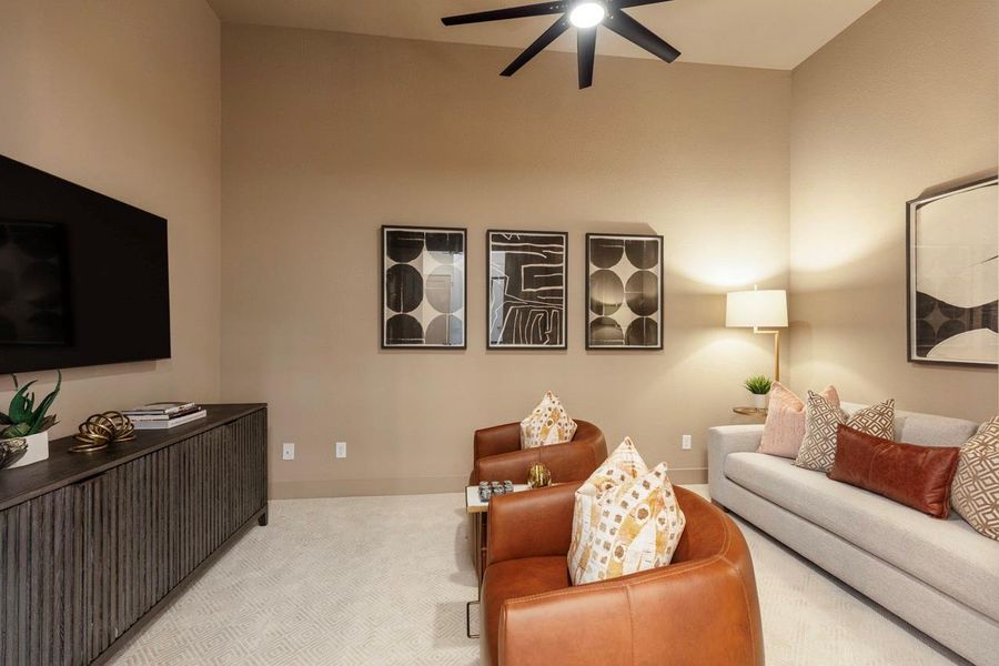 Grange! A new community by Johnson Development. Welcome to this stunning one-story home, featuring 4 bedrooms, 4 bathrooms, and one-half bath. This home also has a three-car garage, a study, and entertainment room. The open concept family room and kitchen create a welcoming atmosphere, perfect for entertaining guests or spending quality time with family. The primary suite has a sitting area for relaxing. Enjoy grilling on the covered patio. Make an appt today!