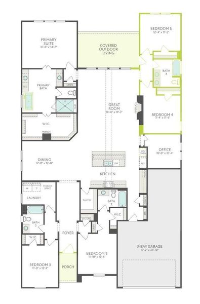 Step into this inviting one-story home where a spacious foyer leads you into the heart of the home—the open great room and chef-inspired kitchen. The kitchen boasts a large central island, ample counter space, and a generous walk-in pantry, perfect for everyday living and entertaining alike. The seamless flow between the kitchen, dining area, and great room creates an ideal space for gatherings. A dedicated home office offers a quiet place to work or create, while a well-appointed laundry room adds everyday convenience. The primary suite serves as a private retreat, featuring a spacious walk-in closet, dual vanities, and a luxurious bath. Unwind on the covered patio and take in peaceful views and beautiful sunsets to end your day.