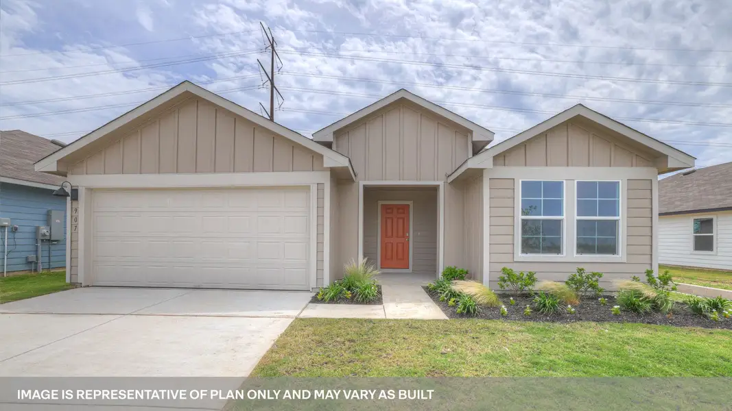 Step into 707 Prince Albert at Swenson Heights, one of our communities in Seguin, Texas. This one-story home is perfect for small families looking for extra space. Inside this 1,566 square foot home, you will find 3 bedrooms, 2 bathrooms and a 2-car garage. Our homes in Swenson Heights feature farmhouse exteriors.