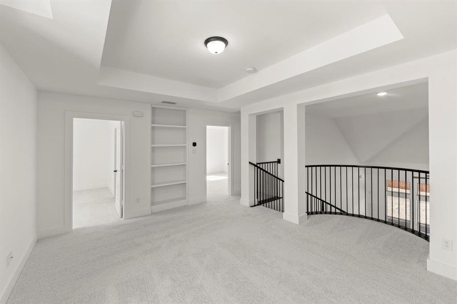 MLS# 21186809 - Built by First Texas Homes - Ready Now! ~ Welcome to this stunning brand-new 4 bedroom, 3.5-bath home designed to impress at every turn all located on a corner homesite. Step inside to a breathtaking family room featuring dramatic vaulted ceilings and a beautiful statement fireplace, creating a warm and inviting space perfect for both everyday living and entertaining. The main level offers exceptional flexibility, including a private study or optional bedroom, an open and airy living room, and a versatile flex room ideal for a home office, playroom, or formal dining. The gourmet eat-in kitchen is complemented by a Butler’s pantry, making hosting effortless and elegant. Retreat to the expansive owner’s suite on the first floor, a true sanctuary complete with a spa-inspired bath featuring separate vanities, a relaxing garden tub, and a large step-in shower. Upstairs, you’ll find four generously sized bedrooms, including two that share a stylish Jack-and-Jill bath. A dramatic Juliet balcony overlooks the family room below, adding architectural interest and an open, connected feel throughout the home. With thoughtful design, spacious living areas, and high-end finishes throughout, this exceptional home offers comfort, style, and versatility for modern living.