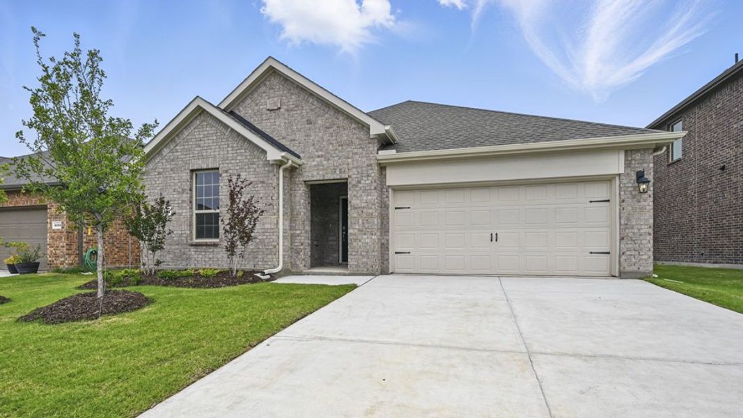 Discover the perfect family home in this charming D.R. Horton Series floorplan design. From the architecturally detailed exterior with its divided light windows and decorative 2-car garage door, to the warm, walnut gel-stained front door, every detail is crafted for comfort. (Decorative front door options are available for upgrade.)