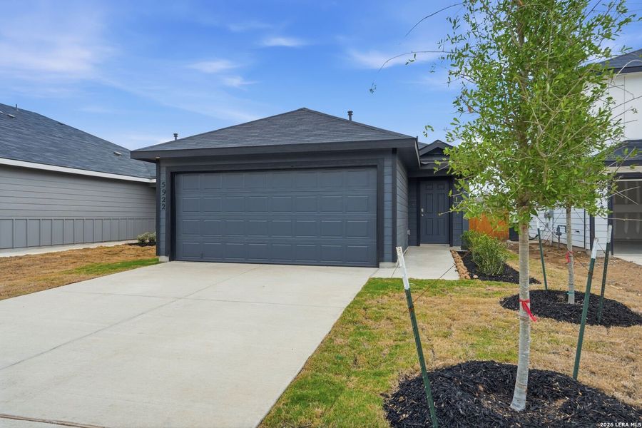 *Seller is willing to assist with closing costs or a rate buy-down through preferred lender with an acceptable offer. * The Alamo is a charming one-story home featured at Blue Ridge Ranch in San Antonio, TX. Featuring 3 bedroom, 2 bathroom, 1190 square feet of living space and a 2-car garage. A front porch welcomes you into the home and opens to the gourmet kitchen which includes quartz counter tops, quality cabinets, stainless steel appliances and an open concept floorplan with the kitchen flowing seamlessly into the dining room and living room. The main bedroom has an attractive ensuite bathroom that features a quartz vanity countertop and quality cabinetry. Enjoy additional storage with a spacious walk-in closet located off of the primary bathroom. Your secondary bedrooms all feature quality carpet flooring and a closet, and can be used as bedrooms, offices, work out spaces or other bonus rooms. The possibilities are endless with The Alamo floor plan. Additional features include sheet vinyl flooring in entry, living room, and all wet areas, quartz counter tops in all bathrooms and HOME IS CONNECTED base package. Using one central hub that talks to all the devices in your home, you can control the lights, thermostat and locks, all from your cellular device.