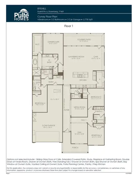 July completion. The spacious one-story Cuney Cuney plan by Pulte Homes offers an open-concept layout with a combination eat-in kitchen, cafe area, and a Gathering Room.