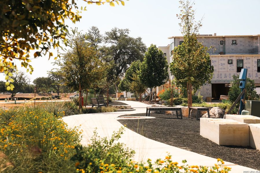 Welcome to Victoria Commons, located in the culturally rich and vibrant Lavaca Neighborhood part of Southtown. Steps from everything Downtown San Antonio has to offer, including award-winning restaurants, cocktail lounges, coffee shops, vibrant arts scene, theater and music venues, Alamodome, Hemisphere-Civic Park, Riverwalk, Blue Star Arts Complex, Museum and Mission Reach, and ease of access to major expressways. Don't miss out on the chance to experience the best of city living in this truly exceptional home. Experience the Santiago floor plan, a seamless blend of contemporary design and everyday comfort. The entry level features a private en-suite bedroom with its own entrance perfect for guests or a dedicated home office, plus a convenient two-car garage and utility room. An open-concept main floor centers on a bright living area that flows into the dining and kitchen. The kitchen features quartz countertops, a generous island, tasteful backsplash, sleek appliances, gas cooking, custom cabinetry, and a pantry. Secondary bedroom with walk-in closet and full bath located on second level. A versatile third level hosts a loft space ideal for an office or workout space. The primary suite offers a tranquil retreat with a dual-vanity bath, walk-in shower, and a generously sized closet. Thoughtful design, abundant upgrades, and energy-efficient, low-maintenance features make everyday living effortless. Images are for illustrative purposes and of model unit.