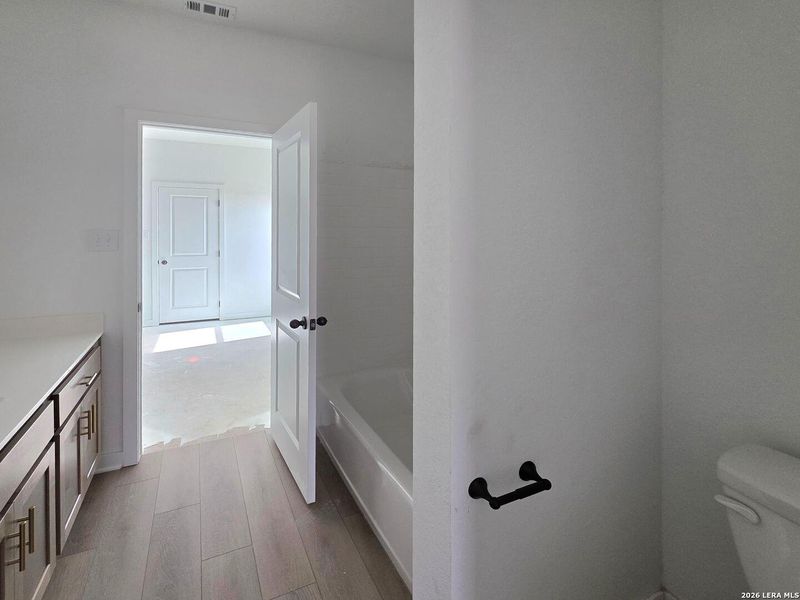 This single-story, 4-bedroom, 2-bath home combines style and functionality with a spacious open layout. The eat-in kitchen features a center island, 42" cabinets, quartz countertops, built-in oven, cooktop, microwave, and walk-in pantry, perfect for cooking and entertaining. The gallery foyer welcomes guests while the family room flows effortlessly from the kitchen, creating a bright and inviting living space. The primary suite offers a private bath with double vanities, shower, and walk-in closet. Three additional bedrooms offering flexible living space. This home is part of our Laguna Collection - inspired by wide horizons and slow, easy days. Sun-bleached neutrals blend with earthy textures to create a space that feels open, airy, and beautifully relaxed. Modern simplicity finds harmony in nature-inspired elements, giving you a home where time stretches out, and everyday life feels just a little more serene. This home is in Saddlebrook Ranch, a master-planned community in Schertz, offering easy access to I-35, shopping, dining, Randolph AFB, a pool, playground, and top-rated schools.