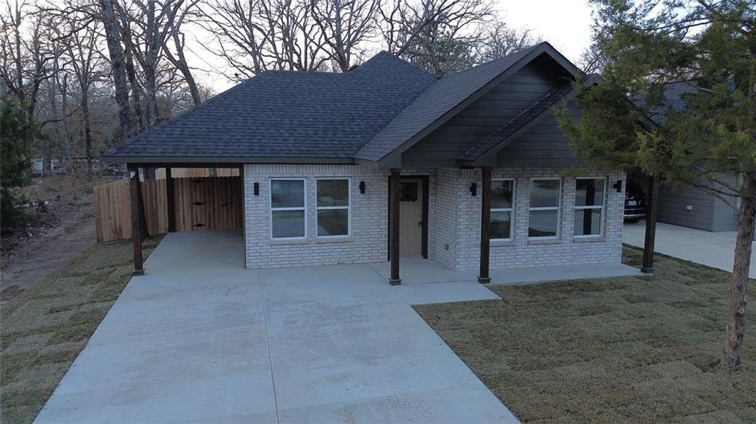 Located in Mabank just minutes away from Cedar Creek Lake! Located near shopping, dining, and a public boat tamp that provides access to 32,873 acres of water recreation. This home offers a stylish curb appeal and thoughtfully designed living space, this newly built home blends modern comfort with everyday functionality. The exterior features a covered front porch, brick accents, and a spacious driveway with a covered carport. The bright kitchen showcases granite countertops, a large island, white soft close cabinetry, walk-in pantry, stainless steel appliances, and tile backsplash-perfect for entertaining and daily living. The primary suite features a box ceiling with wood beam accents, a generous walk-in closer with custom shelving, and glass-tile shower. Bedrooms offer carpet floors with custom shelving. A mudroom style built in bench and storage, along with a separate utility room complete with cabinets, and shelving, adds convenience and organization. Designed with comfort, storage, and modern finishes in mind, this home offers a welcoming space to relax and enjoy contemporary living.