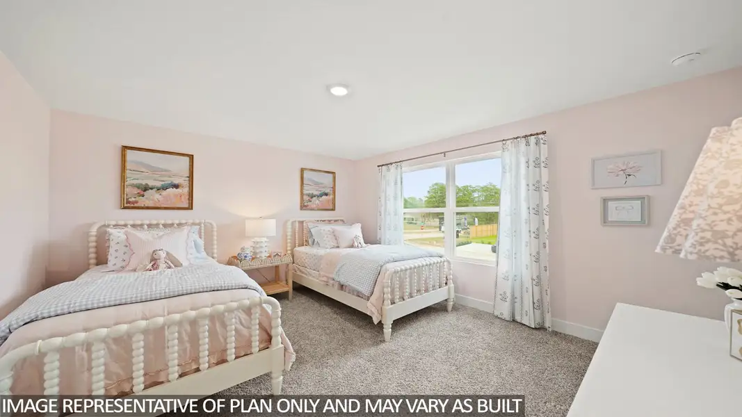 Journeying up the stairs to the second story of the home, you will enter the game room, which has carpet flooring and two bright windows. The game room can serve various functions ranging from a movie room or library to an office, homeschool room, or playroom.