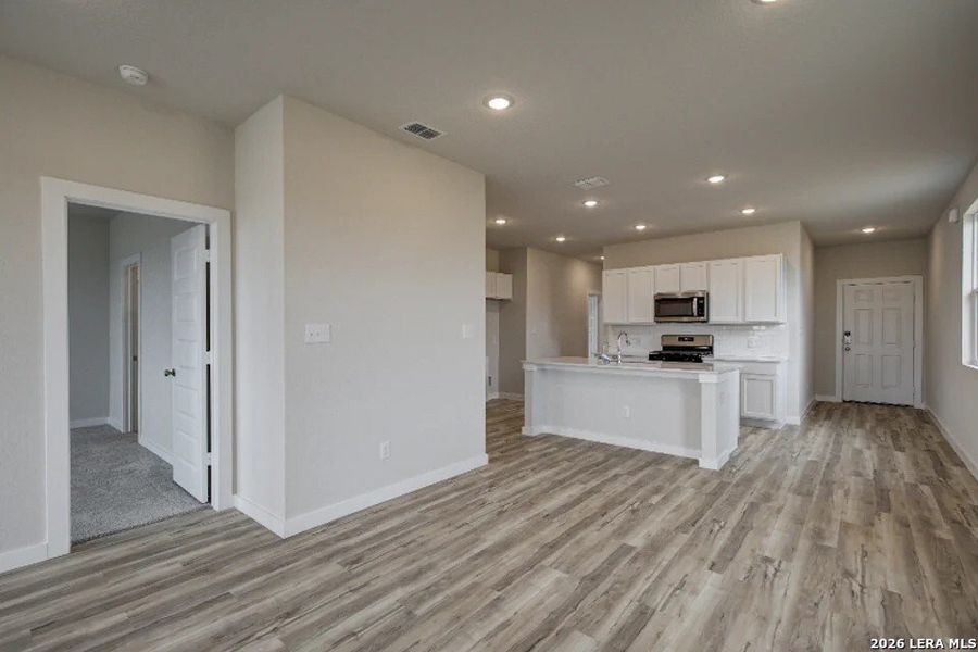 Welcome to the Isabella at Hacienda, where elegance meets versatility in a single-story floor plan. This home embraces the open-concept lifestyle, with its seamlessly connected great room, dining area, and kitchen-a layout perfect for everything from entertaining to game night. The owner's suite features a private bathroom and a large walk-in closet, and the remaining three bedrooms share a bath with dual vanities. Additional home highlights and upgrades: 36" white kitchen cabinets, quartz countertops and backsplash Luxury wood-look vinyl plank flooring in common areas Stainless-steel appliance package with gas range oven Recessed lighting throughout home Cultured marble countertops and modern rectangular sinks in bathrooms Tile surround in shower Landscape package with full sprinkler system 240V electric car charging port Garage door opener with two remotes Covered patio Exceptional included features, such as our Century Home Connect smart home package and more!