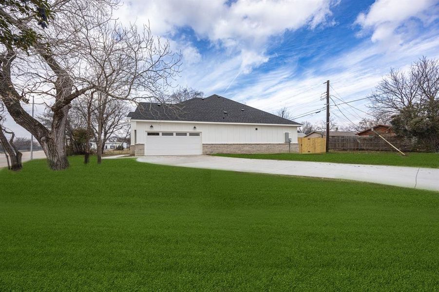Stunning New Construction on an Oversized Corner Lot! This beautifully designed modern farmhouse offers 4 bedrooms, 2.5 bathrooms, and approximately 1,945 sq ft of thoughtfully planned living space. Situated on two lots totaling approx. 9,450 sq ft, this home provides extra yard space and enhanced privacy. The open concept layout features soaring ceilings, luxury vinyl flooring, and abundant natural light throughout. The living room showcases a sleek electric fireplace and flows seamlessly into the chef’s kitchen, complete with a large quartz island, custom cabinetry, designer backsplash, pendant lighting, and stainless-steel appliances perfect for entertaining. The spacious primary suite includes tray ceilings, a spa inspired bathroom with a freestanding soaking tub, oversized walk in shower with designer tile, dual vanities, and premium finishes. Secondary bedrooms are generously sized and thoughtfully placed. Additional highlights include a 2 car garage, extended driveway, modern fixtures. Conveniently located near downtown Fort Worth, major highways, dining, and entertainment. Move in ready and built with quality craftsmanship this home is a must see.