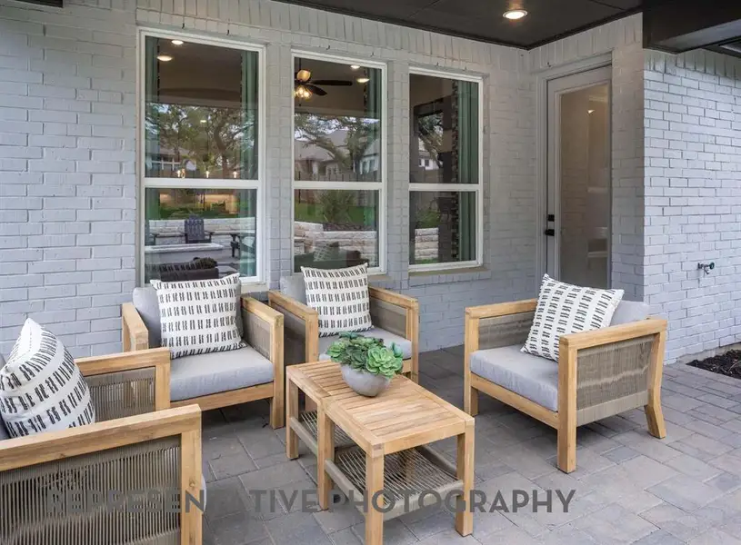 Beautiful brick 1 story floor plan with high ceilings that invite you into open concept living. Kitchen features designer subway tile backsplash with gas cooktop, walk in pantry and expansive quartz island. Enjoy entertaining on the extended covered patio. Primary Suite features a box window, large walk-in closet, drop in tub with separate shower and dual vanities.