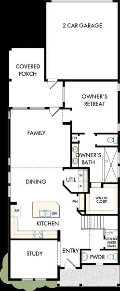 - KitchenEntry HallPowder RoomOffice/StudyDining RoomFamily RoomOpen Concept FloorplanPrimary Bedroom Downstairs