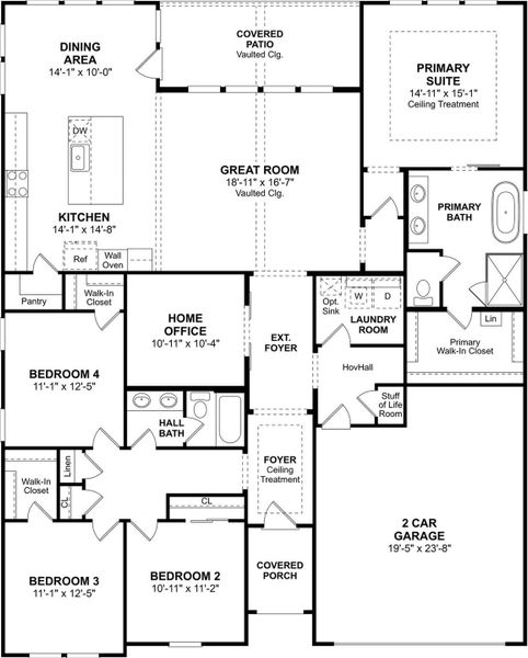 Welcome to Westland Ranch located in League City, TX! This community features K. Hovnanian's Looks: professionally curated interiors. This one-story Barcelona home in our Classic Look features 4 beds, 2 baths, and 2-car garage. The welcoming foyer showcases a decorative feature wall, leading to a flexible home office. The charming island kitchen boasts grey stacked cabinets and sleek quartz counters. The impressive great room stands out with a vaulted ceiling and a wall of windows overlooking the covered patio. The private primary suite serves as a retreat, complete with a feature wall and a tranquil bath featuring a freestanding tub & dual sinks. Located close to Downtown Houston and Galveston Island. Students are zoned to Clear Creek ISD. Amenities include a resort style pool, playground, and more! Offered by: K. Hovnanian of Houston II, L.L.C.