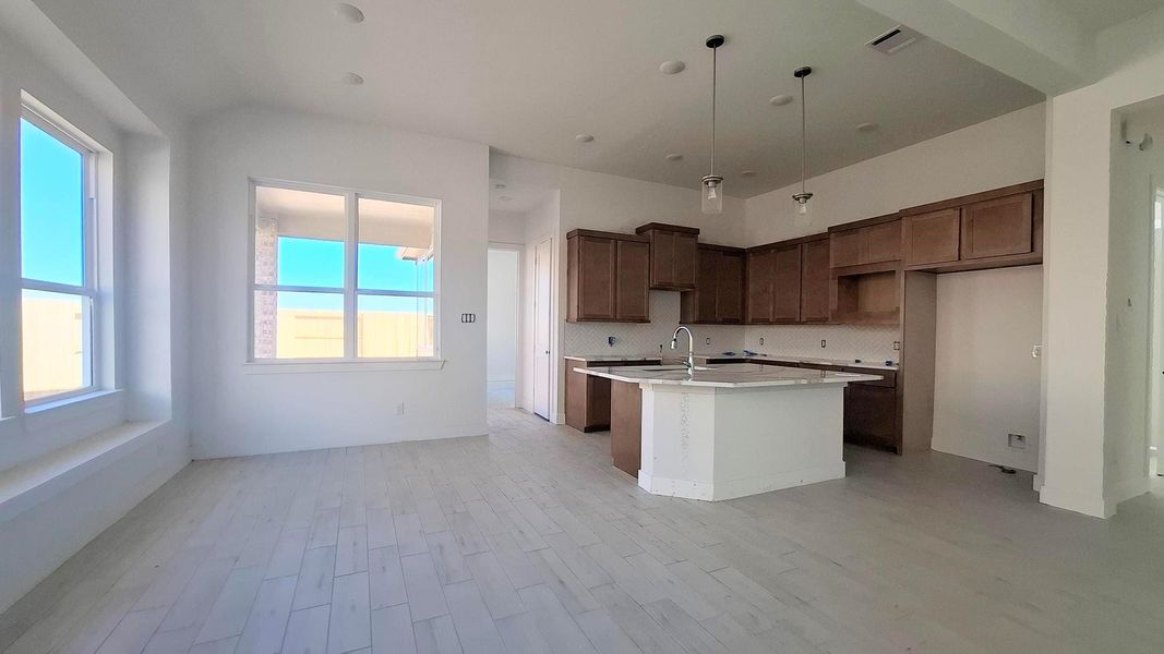 This stunning one-story home perfectly blends style, comfort, and functionality. Offering three spacious bedrooms plus a dedicated home office, the flexible layout is ideal for both everyday living and work-from-home needs. Tall ceilings and oversized windows flood the space with natural light, creating an open, airy atmosphere throughout. The kitchen features natural cabinetry paired with upgraded quartz countertops, combining timeless beauty with durability—perfect for entertaining or daily living. The private owner’s suite is a true retreat, complete with two generous walk-in closets for exceptional storage and organization. Outside, the elegant stone elevation enhances curb appeal and adds timeless character, making this home just as impressive on the exterior as it is inside. Schedule your private tour today! Home is under construction - Est. completion APRIL - Photos are representative