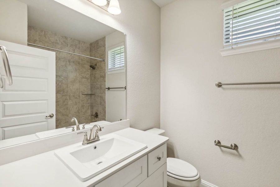 The private primary suite includes a spa-inspired bath, walk-in closet, and dual vanities. Secondary bedrooms are thoughtfully arranged for privacy, while dedicated storage solutions offer versatility, making this new-construction home perfect for all your needs.