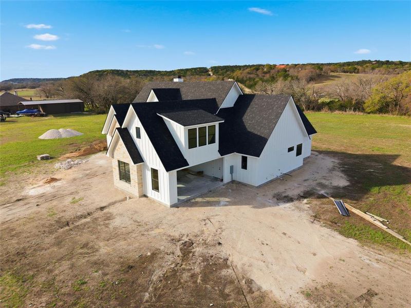 Beautiful new construction home situated on 5 acres in Gatesville ISD, complete with a scenic seasonal creek and peaceful country setting. This 4 bedroom, 3 bath home features an beautifully designed board and batten & stone exterior, and offers an inviting open-concept floorplan featuring a spacious living area with vaulted ceilings and a wood-burning fireplace. The kitchen is designed for both function and style with white cabinetry, marble countertops, a large alderwood island, a generous walk-in pantry, and convenient mudroom space. The isolated primary suite features vaulted ceilings and a spa-like en suite bath with a freestanding tub, separate shower, and dual vanities. Three spacious guest bedrooms each offer walk-in closets, providing ample storage and flexibility. Upstairs, a versatile game room serves as an ideal second living or entertainment area. Energy-efficient foam insulation enhances comfort and efficiency throughout the home. Additional features include a 2-car garage and a back patio perfect for enjoying the surrounding acreage and natural views. Builder will provide New Home Warranty with sale! This property offers the ideal combination of modern finishes, thoughtful design, and room to enjoy peaceful country living.