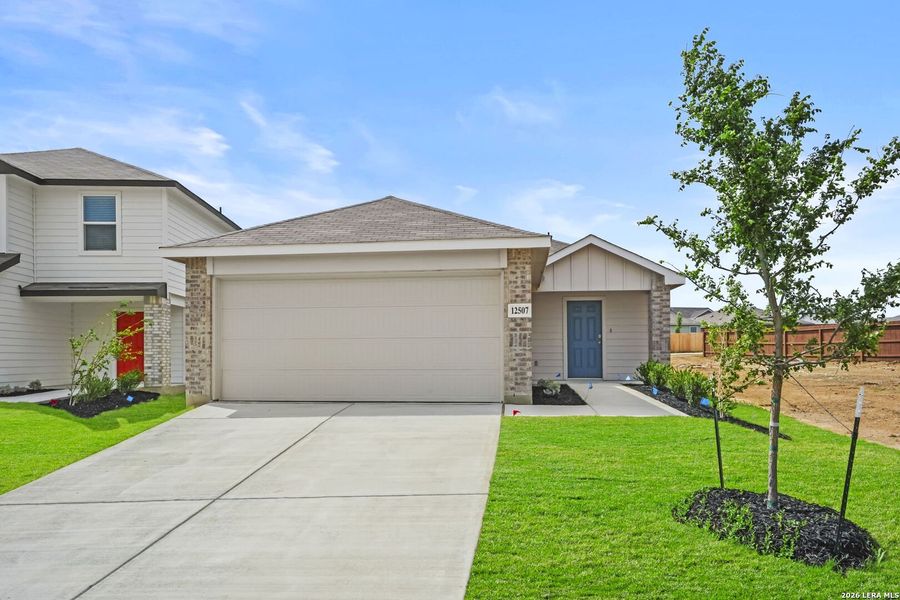 *Seller is willing to assist with closing costs or a rate buy-down through preferred lender with an acceptable offer. The Estero is a charming one-story home featured in Avenida in Converse, TX. Featuring 4 bedroom, 2 bathroom home also offers 1586 square feet of living space and a 2-car garage. A front porch welcomes you into the home and opens to the gourmet kitchen which includes quartz counter tops, shaker style cabinets, stainless steel appliances and an open concept floorplan with the kitchen flowing seamlessly into the dining room and living room. The main bedroom has an attractive ensuite bathroom that features a quartz vanity countertop, shaker style cabinetry and a spacious tiled walk-in shower. Enjoy additional storage with a large walk-in closet in the primary bedroom. Your secondary bedrooms all feature quality carpet flooring and a closet, and can be used as bedrooms, offices, work out spaces or other bonus rooms. The possibilities are endless with The Estero floor plan. Additional features include sheet vinyl flooring in entry, living room, and all wet areas, quartz counter tops in all bathrooms and HOME IS CONNECTED base package. Using one central hub that talks to all the devices in your home, you can control the lights, thermostat and locks, all from your cellular device.