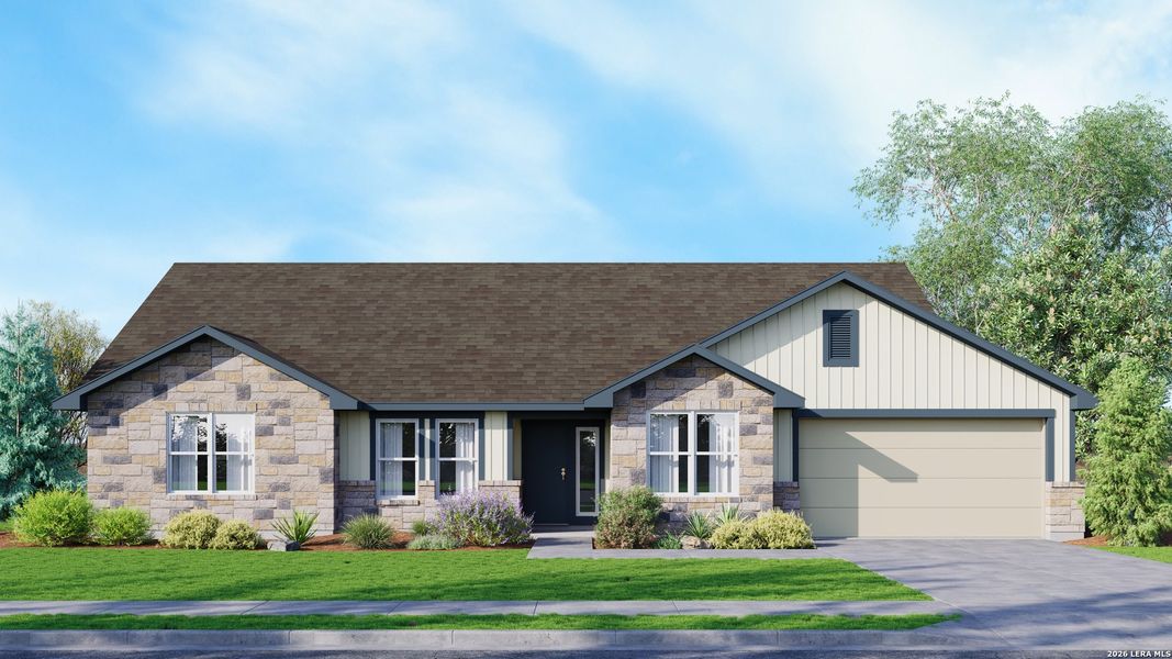 Explore the pinnacle of contemporary living in this new construction home by Rancho Valley Homes in Poteet, TX. Situated on a generous 1-acre lot, this residence showcases a luxurious primary bedroom with an ensuite bath, including a walk-in shower and a spacious walk-in closet. The open-concept living area is crafted for seamless entertaining, highlighting energy-efficient appliances, exquisite granite countertops, and chic shaker-style cabinets in the kitchen. Experience the tranquility of a rural setting while still being just 30 minutes from downtown San Antonio. (1 acre lot on a cul-de-sac)