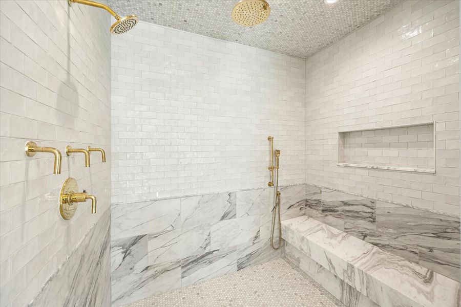 This exceptional River Oaks new construction by Brookstone Homes, redefines timeless architecture. The main residence offers 5 bedrooms, 5 baths and 3 powder baths. Interiors showcase French White Oak floors, a bespoke paneled entry, soaring ceilings & abundant natural light. Formal living & dining spaces flow seamlessly, anchored by a Viola marble fireplace, bar & climatized wine room. A dramatic 3-story foyer leads to a refined study. The kitchen opens to the family & breakfast rooms, blending European elegance with modern luxury. Kitchen features include honed dolomite countertops, plaster vent hood, Wolf and Sub-Zero appliances, built-in coffee maker & adjacent Scullery with second refrigerator and dishwasher. The primary suite is a serene retreat with spa-inspired bath, coffee bar & 2 walk-in closets. Additional highlights include a mudroom,2 game rooms, elevator for all levels, covered patio with summer kitchen, brick motor court, 3car garage & full quarters. Per Seller