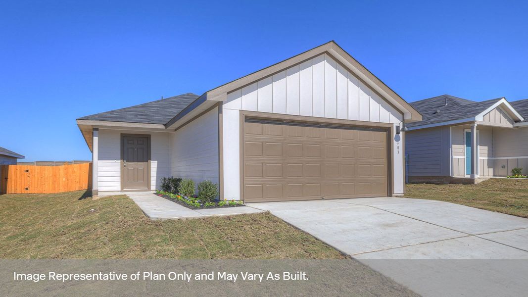 Check out the Barton, one of our one-story floorplans available at Bollinger in Maxwell, Texas. This 3 bedroom, 2 bathroom home includes a 2-car garage all within 1,280 square feet of comfortable living space. Our homes in Bollinger feature our modern farmhouse exteriors and the Barton is available in 2 exterior options.