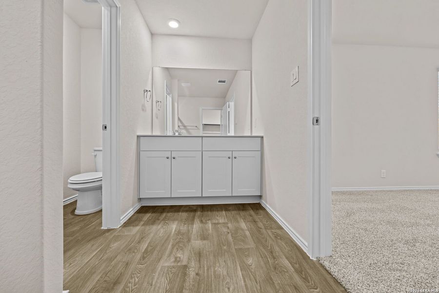 *Seller is willing to assist with closing costs or a rate buy-down through preferred lender with an acceptable offer. * The Diana plan is our largest one-story home offered in Applewood in San Antonio, TX. Featuring 2 classic front exteriors, 3 bedrooms, 2 baths, 2-car garage and 1535 square feet of living space, this floor plan is sure to turn heads. Comfort greets you at the door with a long foyer leading to a combined living and dining area, then flowing into the grand corner kitchen. The kitchen includes a breakfast bar with beautiful granite counter tops, stainless steel appliances, shaker style cabinetry and a corner pantry with built-in shelving. Your blended family room and dining area feature quality sheet vinyl flooring and plenty of windows, creating a light and bright space for living and entertaining. The main bedroom is located at the back of the home and has its own attached bathroom that offers a separate water closet, tiled walk-in shower and spacious walk-in closet. All secondary bedrooms offer quality carpeted floors and a closet. These rooms are versatile. Use them as bedrooms, offices, work out rooms or other bonus spaces. The Diana floor plan also includes granite countertops in all bathrooms, full yard landscaping and irrigation, and our HOME IS CONNECTED base package. Using one central hub that talks to all the devices in your home, you can control the lights, thermostat and locks, all from your cellular device.