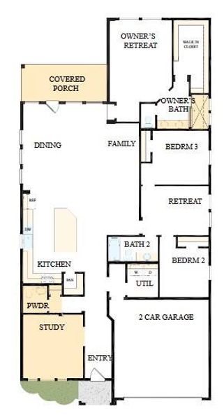 Explore the wealth of comfort and versatility built into every detail of "The Fun Zone" 3 bed/2.5-bath Barnum new home plan in Escondido. A cheerful front study with French doors provides a welcoming opportunity to craft your ideal parlor, lounge, or office. Prepare, present and enjoy your culinary masterpieces on the huge island in the streamlined kitchen. Conversations with loved ones and quiet evenings to yourself are equally scenic from the airy shade of your covered porch. Gather in the open dining and living areas for delightful meals and memorable evenings together. The sunlit retreat is the perfect spot for a family movie theater or a fun zone for the kids. End each day in the refined luxury of your Owner's Retreat, which includes a modern spa bath with super shower, double sinks and a deluxe walk-in closet.