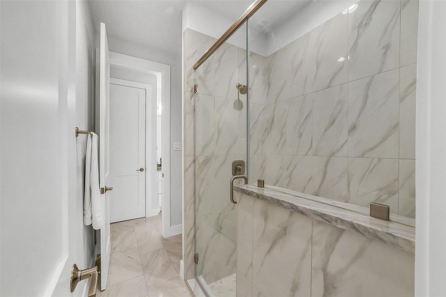 Double front doors open to the open-concept family room featuring 14' ceilings. The gourmet kitchen showcases a large island, 42" cabinetry, ample storage, a walk-in pantry, and tasteful designer finishes. The luxurious primary suite offers a private retreat with a spa-inspired bath and two walk-in closets with custom built-ins. One guest bedroom includes an en-suite bath, ideal for visitors or multigenerational living.