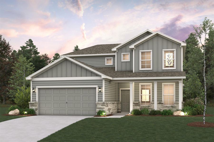 The two-story Lassen floor plan opens with an inviting porch entry that leads past private study and a powder room. An impressive open kitchen with a center island is adjacent and flows into a dining area and an airy great room, creating the perfect space for entertaining and everyday living. The owner’s suite is conveniently located on the main level and offers a walk-in closet and a private bath with dual vanities and a walk-in shower. Upstairs, there are two bedrooms and a bath, as well as a versatile loft space.