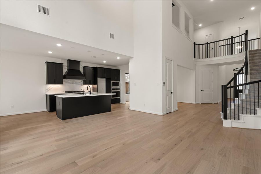 The STRASBURG plan by NEWMARK HOMES features 4 full bedrooms, 3.5 bathrooms, a dining room, formal office, and huge gameroom. Soaring high ceilings welcome you into a long, dramatic staircase and floor to ceiling windows in the family room. Complete with a chef's style kitchen with built-in appliances and plenty of cabinets for storage.