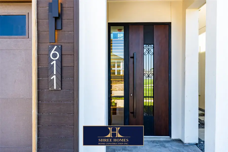 Introducing The Divshal by Shree Homes—a 4-bed, 3-bath masterpiece in a gated enclave of 47 luxury homes. This 2100 sqft gem boasts a METAL ROOF, 2x6 EXTERIOR WALLS, SPRAY FOAM INSULATION, CARRIER HVAC for durability and efficiency. Inside, enjoy soaring ceilings, 8-ft windows, a sleek electric fireplace, and engineered wood floors. The chef’s kitchen shines with GE Café appliances, porcelain countertops, iron-framed pantry door, & soft-close cabinets reaching the ceiling. Coffered ceilings with wood inlays & a dry bar add refined detail. The smart sink, under-cabinet lighting, and designer finishes throughout elevate every space. Outdoors, a hardscaped yard with 6-ft iron door & optional composite deck invites low-maintenance living. The tray-ceiling primary suite offers a spa bath with 3 shower heads and full porcelain tile. Bonus: smart toilets, custom closets, white oak staircase, iron railings, epoxy in garage, low tax rate, and fast access to US 59, HW 90, Med Center & Downtown.
