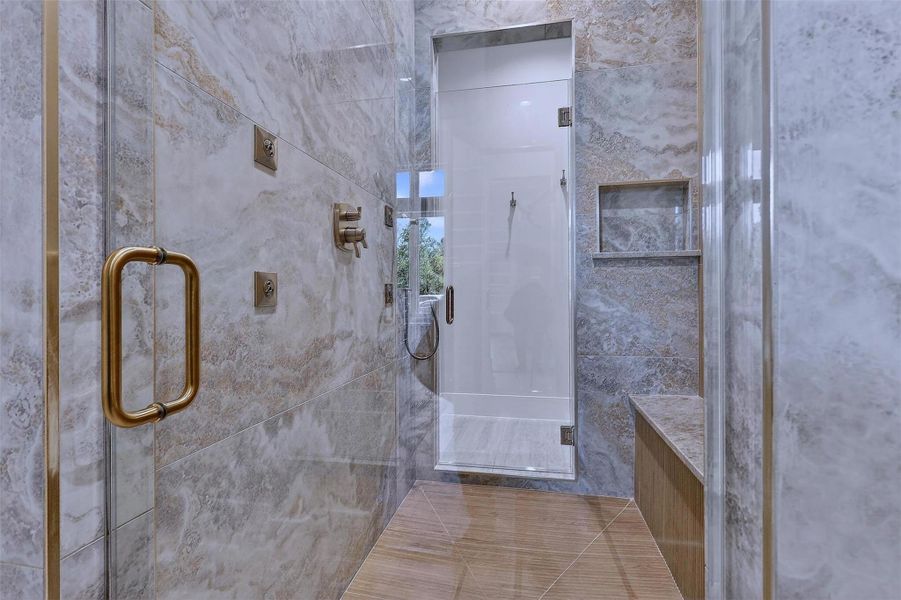 WELCOME HOME! This stunning LUXURY estate in the sought-after HIGH MEADOW WEST offers exceptional DESIGN and functionality. Featuring 4 bedrooms, 5.5 baths, this home showcases CUSTOM finishes, ELEVATED architectural details, and thoughtfully designed living spaces throughout. The Chef's kitchen boasts a GAS range, striking QUARTZITE countertops, extensive CUSTOM cabinetry, and a DESIGNER scullery with statement tile and additional storage. Elegant touches throughout include a dramatic GLASS WINE ROOM, dedicated HOME OFFICE, and seamless indoor-outdoor living. The PRIMARY SUITE features a SPA-like en-suite and TWO CUSTOM walk-in closets. Enjoy a downstairs GUEST/ mother-in-law SUITE with its own en-suite and CUSTOM shower. The home also features a GAME ROOM (1st floor) with sliding GLASS doors leading to the COVERED patio and OUTDOOR KITCHEN! Upstairs you'll find the MEDIA ROOM, FLEX space, and 2 additional bedrooms. This home is perfect for ENTERTAINING and everyday LUXURY!