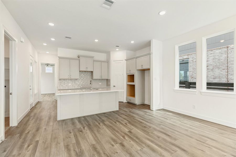 Love where you live in Bridgeland Central, the vibrant heart of Cypress where trails, lakes, dining, and shopping create a connected, walkable lifestyle. This contemporary two-story Valencia plan offers 3 bedrooms, 2.5 baths, a spacious game room, and a 2-car garage designed for modern living. The open-concept layout allows the kitchen to flow seamlessly into the dining and living areas, creating the perfect space for entertaining or relaxing at home. The kitchen features stainless steel appliances, sleek omega stone countertops, and custom cabinetry, while durable laminate flooring enhances the main living spaces with tile in the wet areas for easy care. The private primary suite includes a large walk-in closet, spacious shower, and dual vanities, offering a comfortable retreat at the end of the day. Upstairs, secondary bedrooms share a full bath alongside a versatile game room ideal for movie nights, work, or play. Don’t miss your chance to own in one of Cypress’ premier communities!