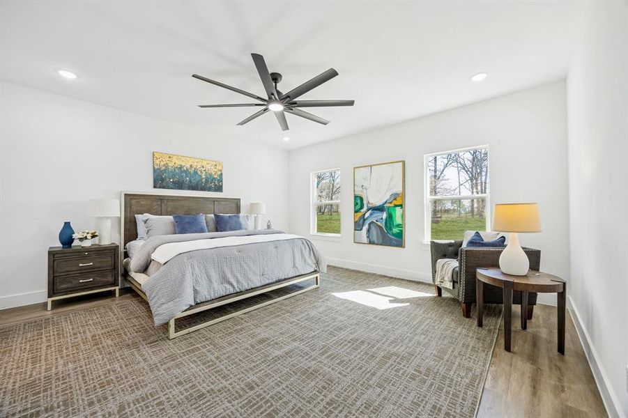 Experience the ideal blend of peaceful country living and everyday convenience in this stunning new construction home, situated on just under one acre in Rains ISD. Offering the serenity of wide-open space while remaining close to town amenities, this property delivers the best of both worlds. Step inside to a bright, open-concept floor plan thoughtfully designed for modern living and entertaining. The split-bedroom layout provides privacy, with a luxurious primary suite tucked away from the secondary bedrooms. The spa-inspired ensuite bath features dual sinks, a walk-in shower, soaking tub, and a generously sized walk-in closet. At the heart of the home, the chef’s kitchen seamlessly connects to the living and dining areas, creating an inviting space for gatherings. Highlights include a striking waterfall island, stainless steel appliances, abundant cabinetry, upper cabinet accent lighting, and ample prep space. An oversized walk-in pantry with a frosted door, adds exceptional storage and functionality. The living room offers a cozy yet contemporary atmosphere with a sleek electric fireplace as its focal point. Outdoors, the Texas-sized backyard provides endless possibilities — whether you envision a future pool, workshop, garden, or outdoor entertaining space. The home is beautifully landscaped and enhanced with exterior lighting, adding charm and curb appeal after sunset. Search address on YouTube for videos.
