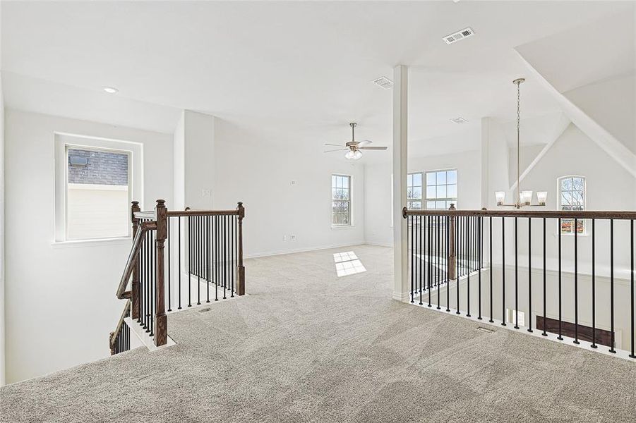 Enjoy the Most Affordable Resort Style Living in Prestigious Northwest ISD. With 2,487 square feet of versatile living space, the Hickory floorplan offers plenty of room for everyone. As you enter, your attention is drawn to the back of the home, where expansive windows and 18-foot ceilings bring in natural light. Moving through the house, you'll pass a front bedroom and bathroom ideal for guests or a home office. The kitchen features a spacious island with ample counter space and storage, serving as the centerpiece that flows into the dining and great room. The owner's suite offers a private bath, complete with a soaking tub, separate shower, and a generous private closet. Upstairs, a large game room and two more bedrooms with walk-in closets sharing a full bath provide additional space for relaxation or entertainment. Wildflower Ranch is a new master-planned community in the highly sought-after Northwest ISD. It will offer amenities such as a resort-style lazy river, an amenity center, playgrounds, walking trails, and an onsite elementary school.