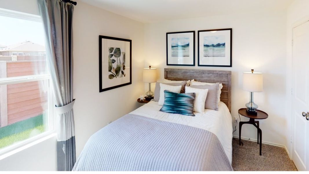 This single-story home is perfect for families who need space. There is a bedroom suite by the front door with a bathroom and walk-in closet, as well as an owner’s suite in the back of the home. Two bedrooms share a bathroom in the hall and the open living area is adjacent with a kitchen, dining room, family room and a back patio.